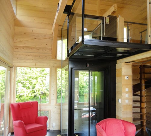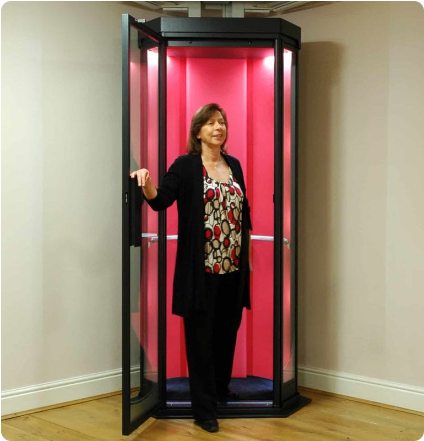 这款家庭电梯有不同尺寸可供选择,最多可容纳5人。它还可以为轮椅使用者和服务员提供轮椅通道。
