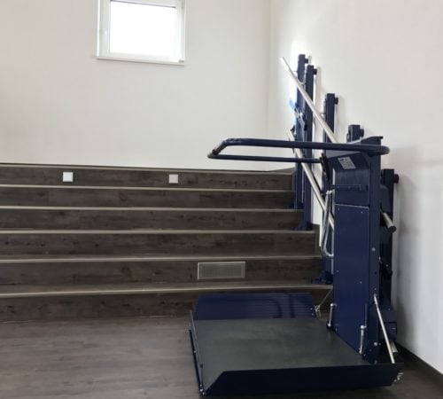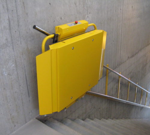 范围从700mm(宽)x 750mm(长)到800mm(宽)×1000mm(长)。平台向下折叠成狭窄的轮廓,以获得最大的楼梯间隙。